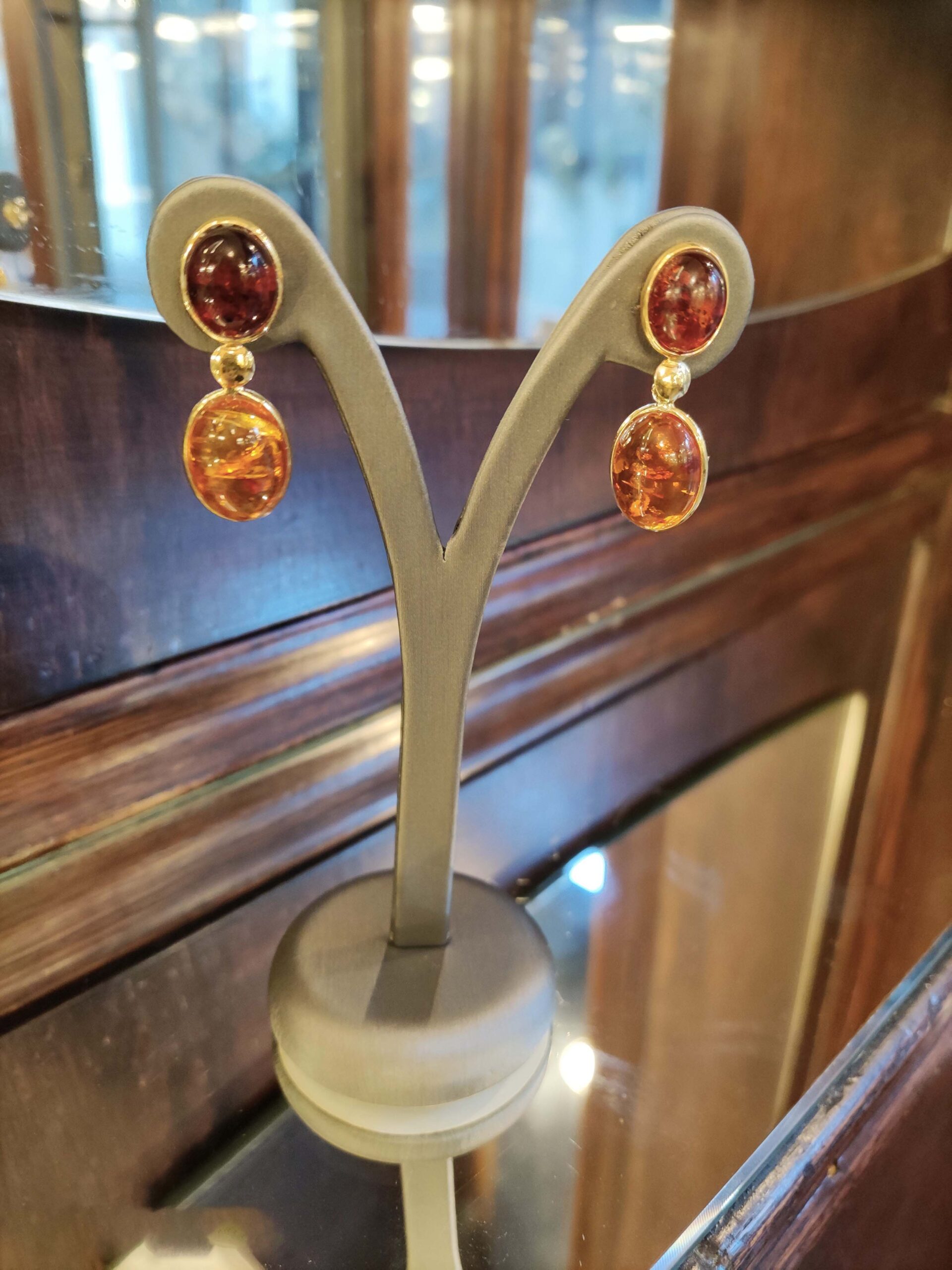 Orecchini Ambra baltica, chiusura perno e farfallina rifiniti in argento dorato