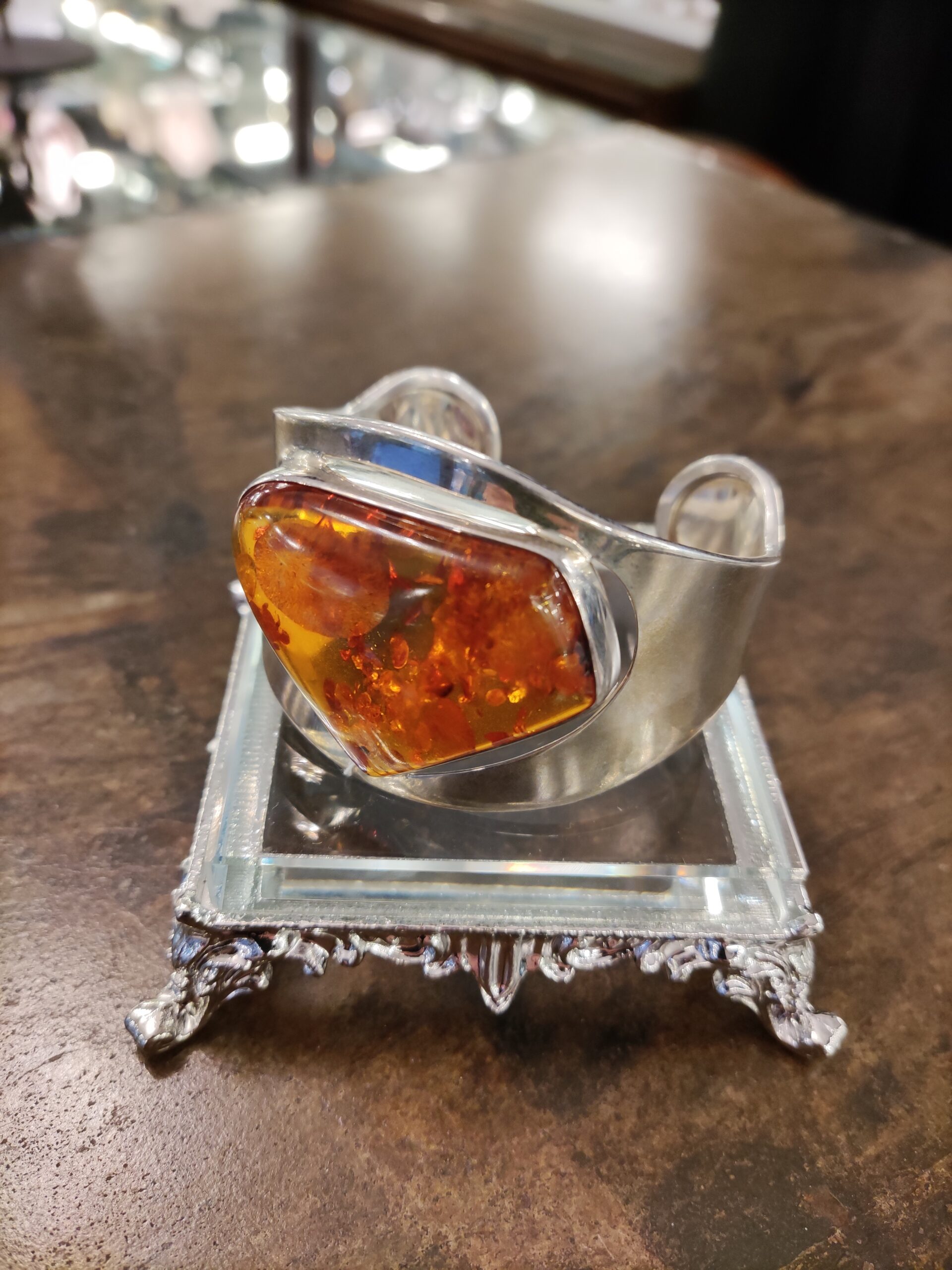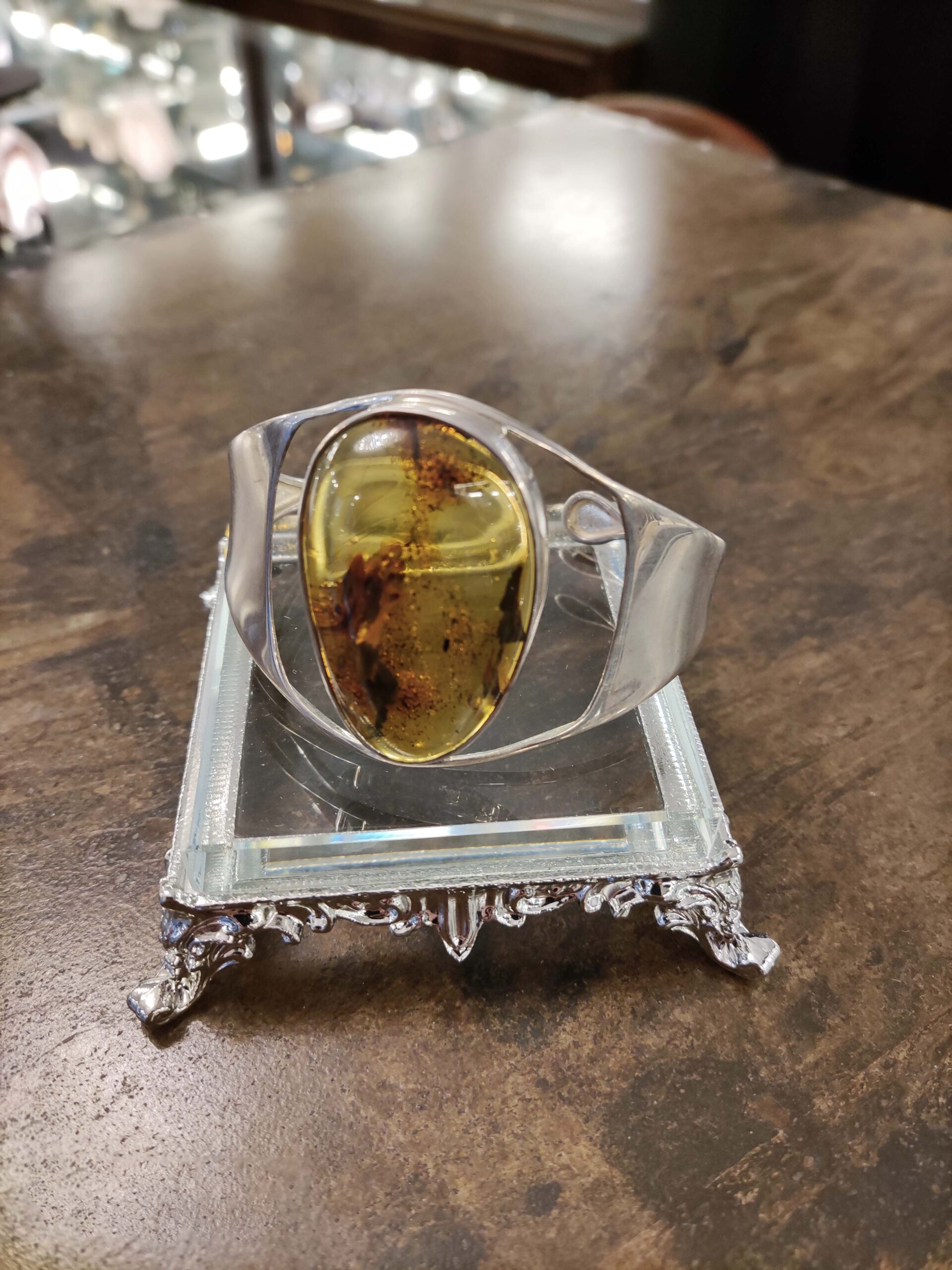 Bracciale in ambra baltica con inclusioni completamente montato in argento 925 regolabile.